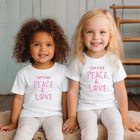 Toddler Short Sleeve T-Shirt - Spread Peace & Love - Pink Design