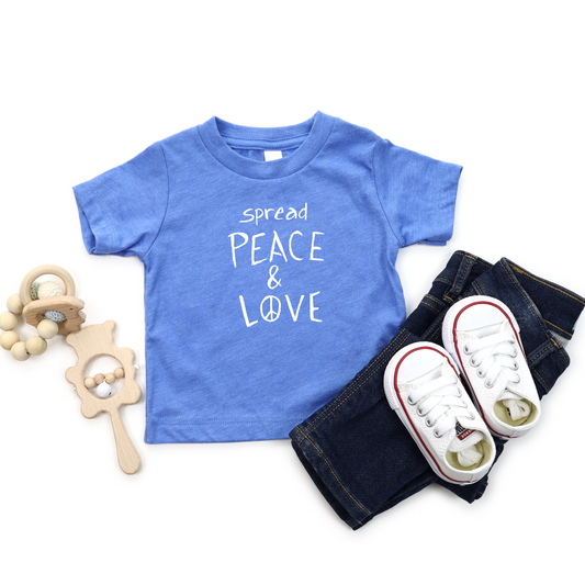 Toddler Short Sleeve T-Shirt - Spread Peace & Love - Blue Design