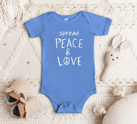 Baby Short Sleeve Onesie - Spread Peace & Love - Blue Design