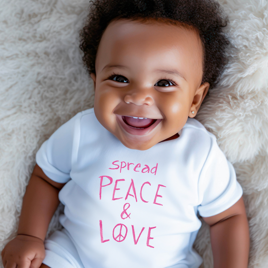 Baby Short Sleeve Onesie - Spread Peace & Love - Pink Design