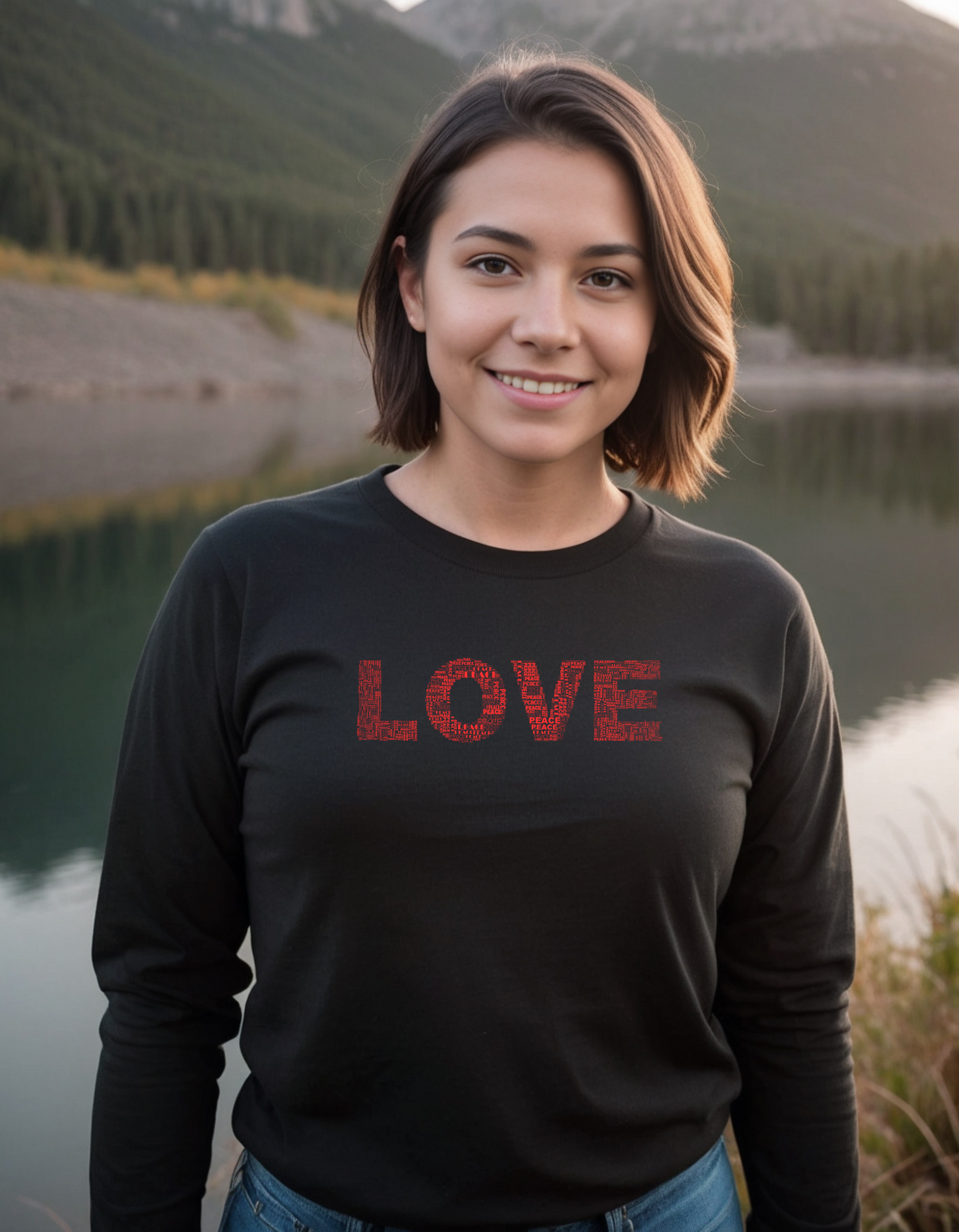 Long Sleeve T-Shirt - Love & Peace - Red on Black